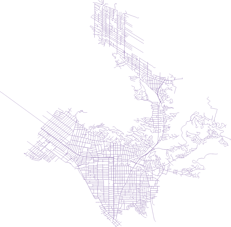 Regardless, to illustrate what the solver can do, we generated a GIF of two of the 40 routes, shown to the right (it is a big file so may take a while to download). Each route is a unique color, and in this case you can see red and then blue coverage of links. Even allowing for the fact that we are missing some important information, the routes still look off somehow. If you follow the progress of the sweeper, you’ll see it bop up and down side streets in an area, and then suddenly move on to a different area leaving some side streets untouched. Eventually those streets will get covered, either by the current vehicle or by some other vehicle’s route, but it makes you wonder why skipping those streets is better than hitting them while the vehicle is there already. These skips and jumps might produce a slightly more efficient route, or they might improve the balance of work across vehicles. In practice, however, these skips and jumps will be difficult on the driver. The driver would probably prefer a bit more consistency over a higher global efficiency score.